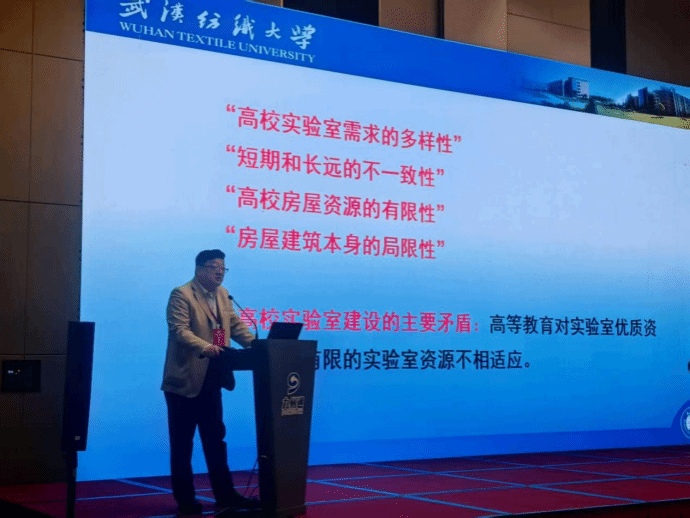 赵金龙以《“双一流”背景下高校实验室新建和改造中的困惑与思考》为题,系统分析了当前高校实验室需求持续增长的背景下,在新建与改造过程中面临的实际难题。他结合自身丰富的工作经验及我校典型案例,分享了“纺大实践”中的有效做法与思考。报告内容紧贴实际、观点鲜明,为与会代表提供了有益借鉴。