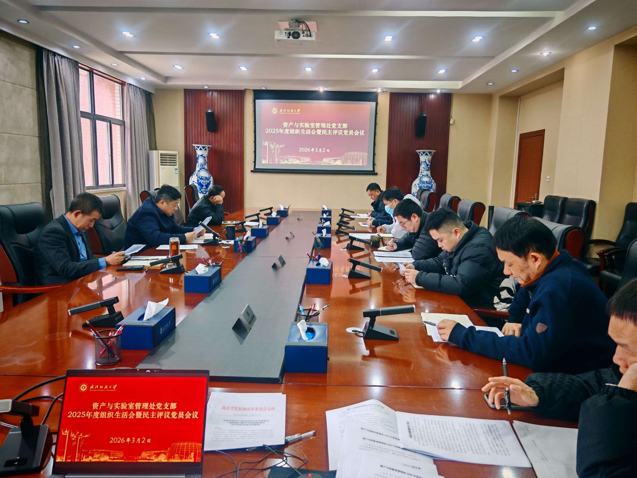 3月2日下午,资产与实验室管理处党支部召开2025年度组织生活会暨民主评议党员会议,紧扣学校关于近期基层党组织工作部署,围绕组织生活会主题,深入开展党支部书记述职、批评与自我批评及民主评议党员工作。会议由党支部书记赵金龙主持,全体党员参加。